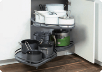 Alle inferieuren zijn in anthracite uitgevoerd. Het gaat daarbij om: kunststof bestekindelingen, afvalemmers, apothekerskasten, tandemkasten en draaiplateaus in hoekkasten.