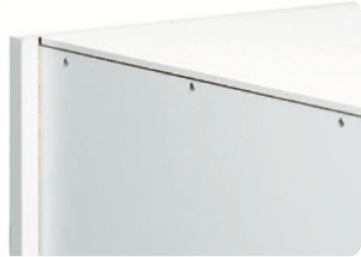 De rugwanden van de kasten zijn geschroefd. Ze zijn 8 mm dik en vochtbestendig.